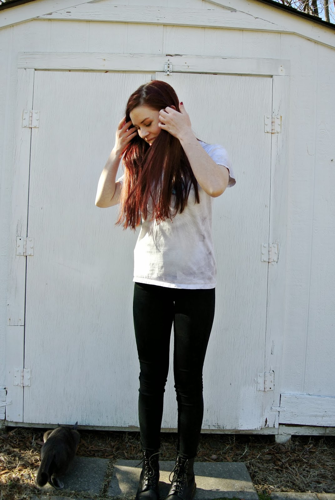 Today I was one of the featured designers today at this recycled fashion show in Charlotte. It was actually really cool. I made a 1950's-type dress out of old sheets and Target bags, and I think it got a lot of positive feedback. Anyways, I decided to dress down in one of my beloved cat shirts since I would be working backstage.